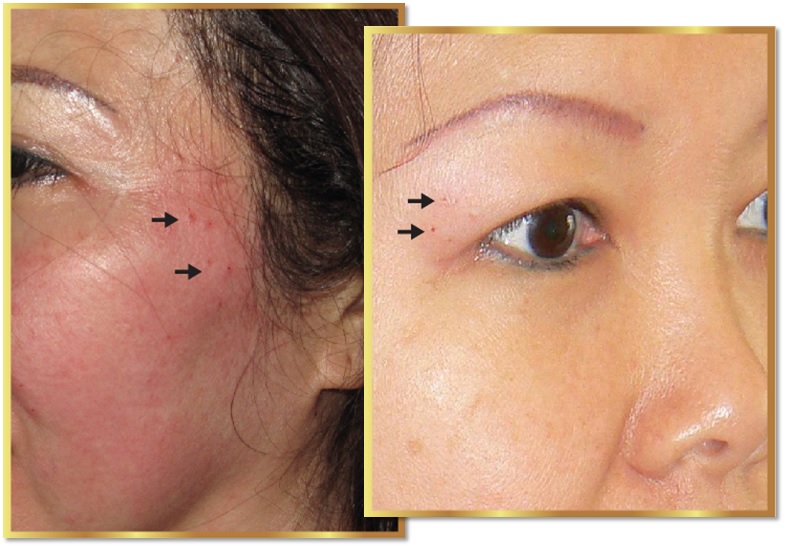 Injuries and skin lesions at the sites of the proposed implantation (acne, herpes, rosacea, papillomatosis, etc.) | Patients with injuries and skin lesions at the sites of the proposed implantation, such as acne, herpes, rosacea, papillomatosis, are not suitable candidates for gold threads implantation. |